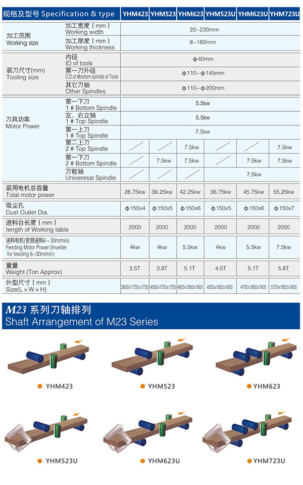 M23, M23U系列四面刨適合木地板、木線、門窗、櫥柜等行業(yè)的加工