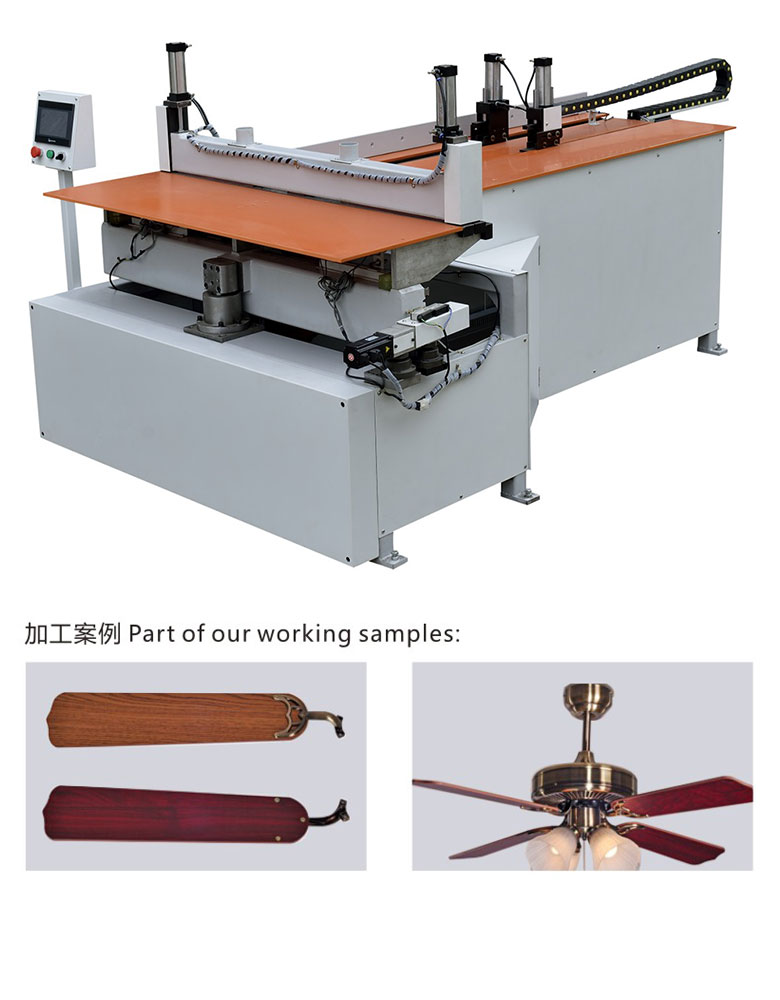 PLC控制,伺服送料,伺服擺角度,加工精準!是加工板式家具開料、大小頭開料,以及木制 風扇葉開料的專用設備。 加工范圍:700 (寬)*1200 (長)mm