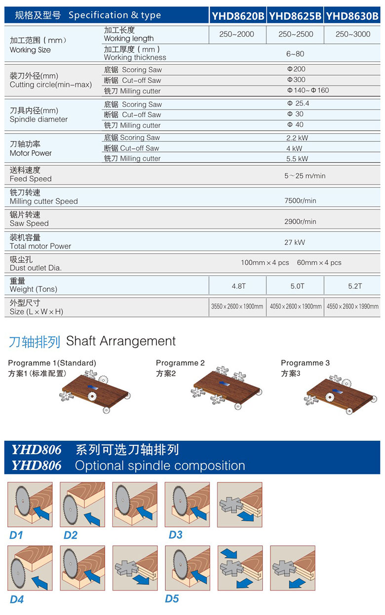 各刀軸配有讀數顯示器,準確顯示刀軸調整的位置尺寸;